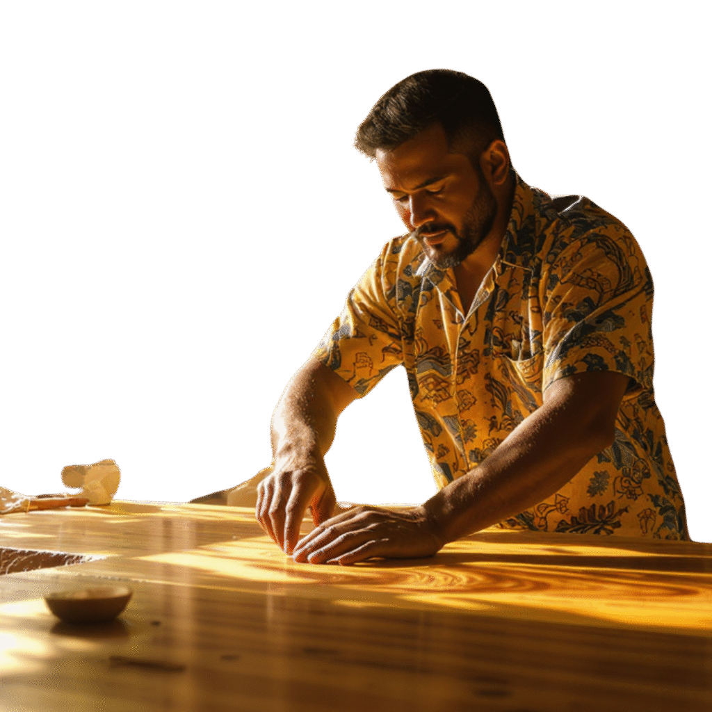 Skilled hands handle every stage: from timber selection, kiln-drying and defect-routing to traditional joinery and final finishing. Techniques combine tukang kayu (traditional joinery) know-how with CNC precision for repeatable quality. So a bespoke table feels handcrafted, consistent and built to last. Photographs of the workshop, process timeline, and short film clips help buyers see the craft in action.